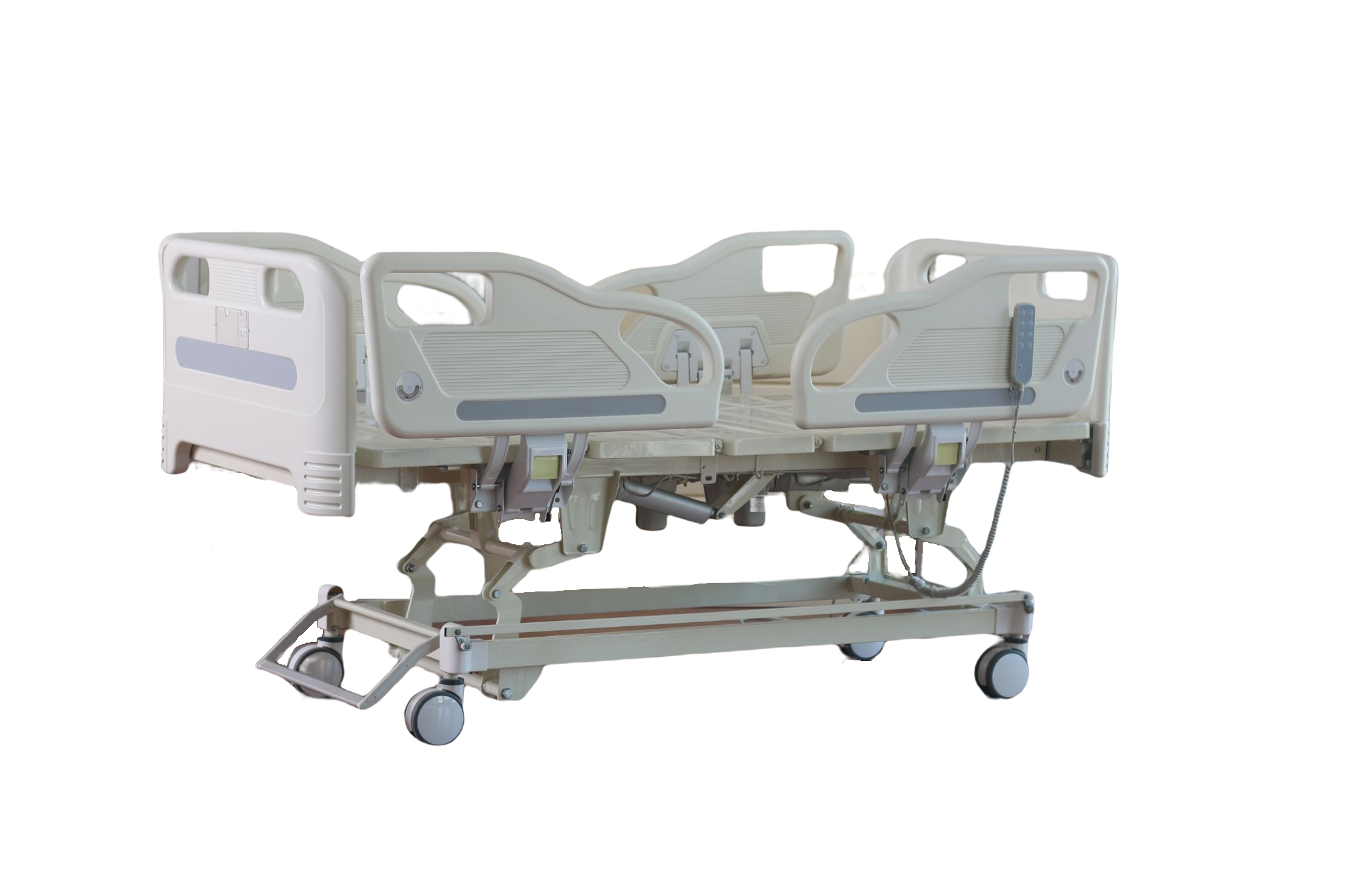 9, four split lifting ABS guardrail, installed on the bed panel, can move with the function of the bed body. Can be up and down, down the process of a pneumatic deceleration device, to prevent in the process of falling too fast to cause harm to personnel.